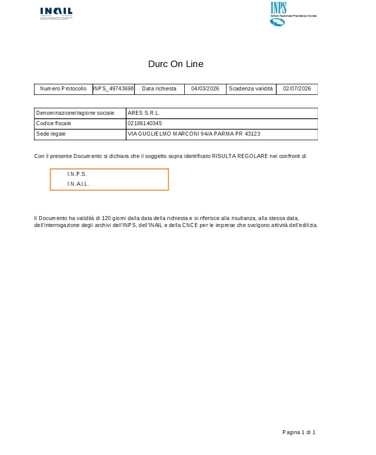 Qui trovate il DURC sempre aggiornato all’ultimo disponibile (per stampare il documento, cliccare sull’immagine)